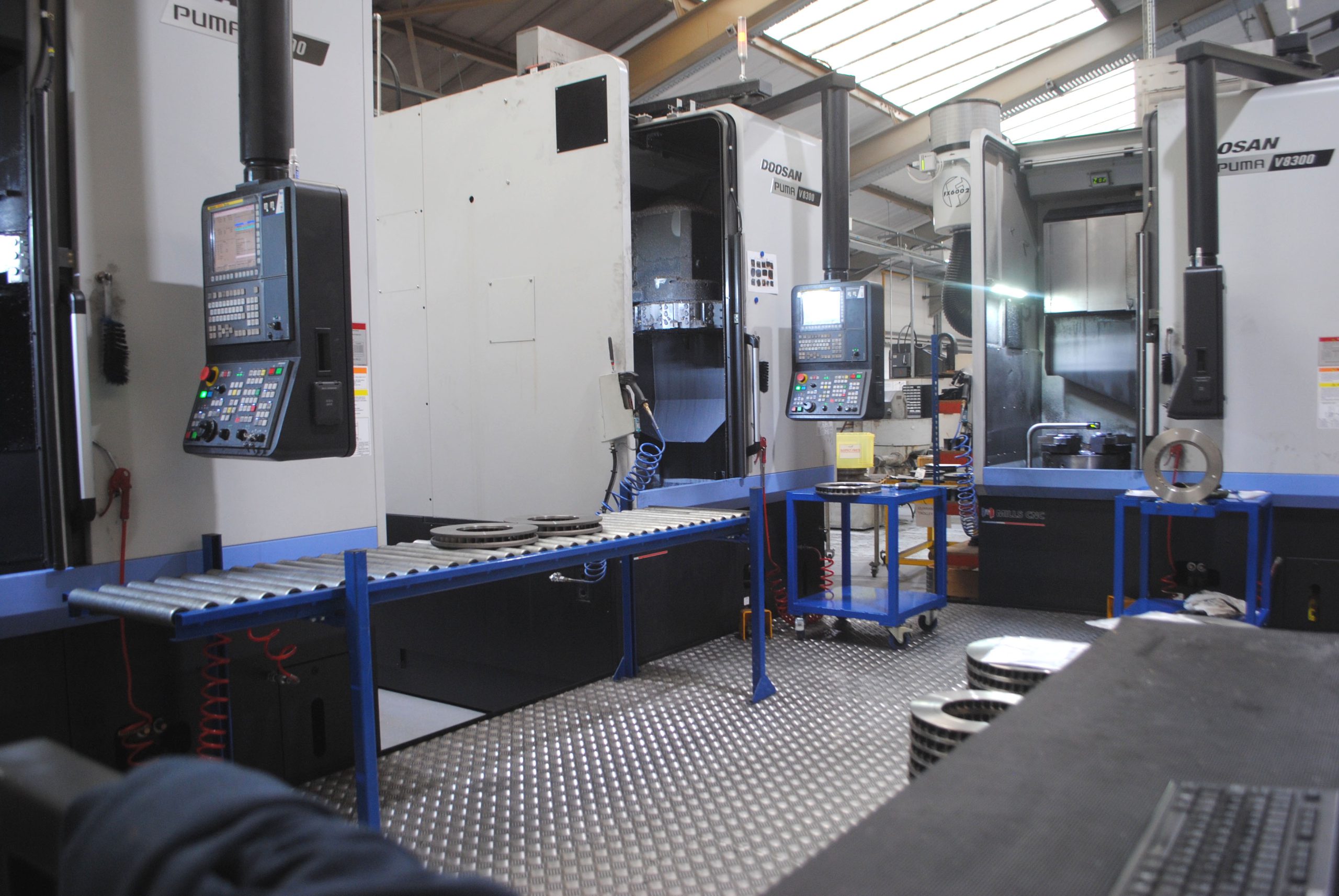 The three Doosan V8300 vertical turning lathes were installed at Alcon’s Tamworth facility in June 2018 as part of a process improvement solution, designed by Mills CNC in partnership with Alcon production engineers, to manufacture the company’s range of high-performance brake discs.