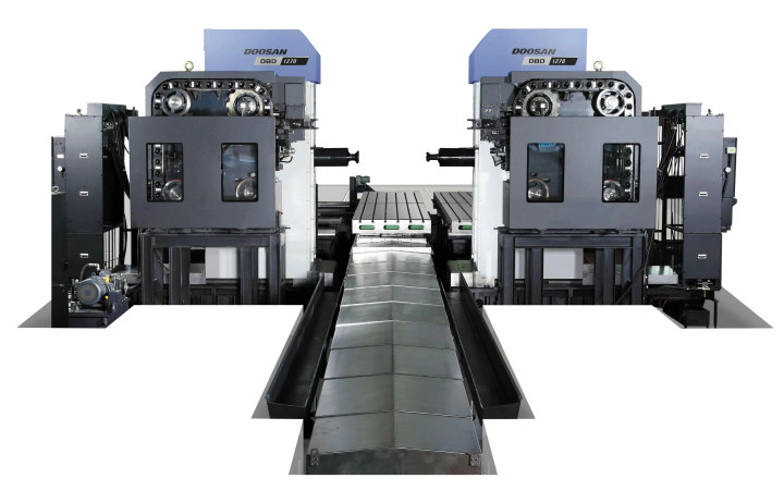 Doosan DBD (double-ended) boring machines enable bi-directional and simultaneous machining of long and symmetrical workpieces as a result of their double-ended boring spindle.