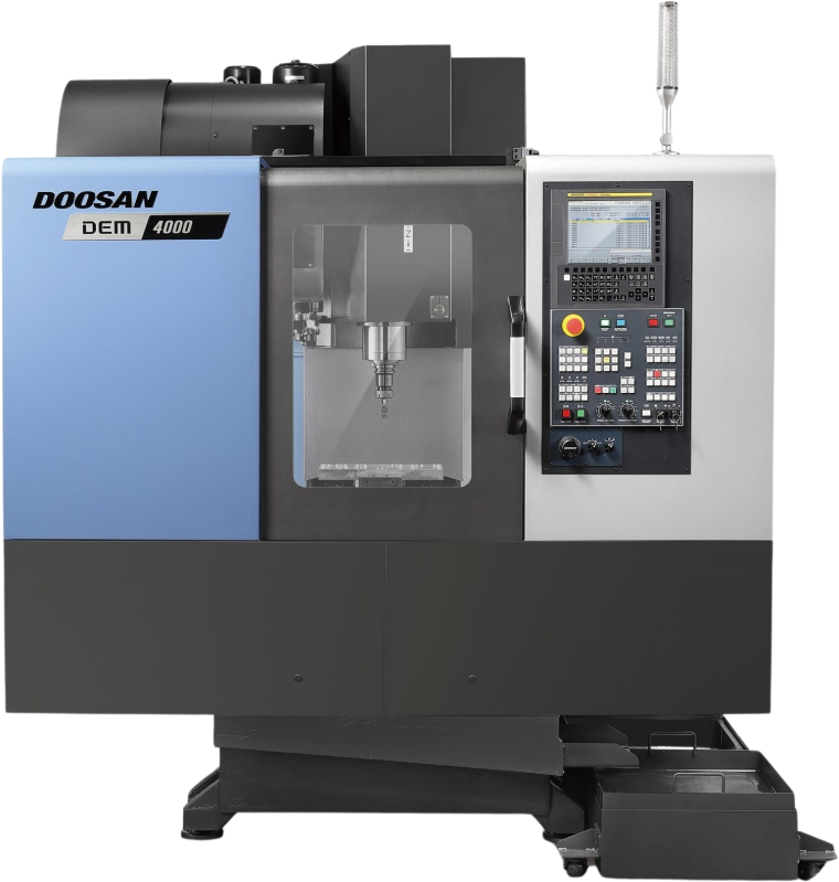 The DEM series includes the Doosan DEM 4000, a compact, high-performance vertical machining center.