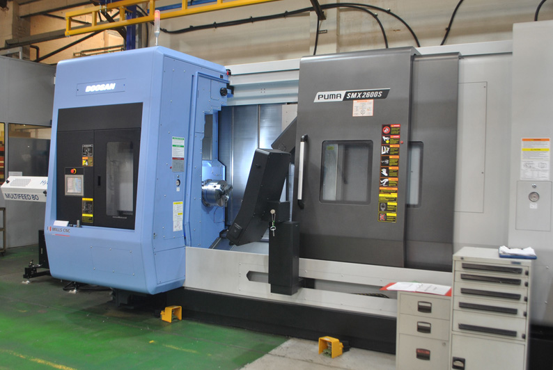 Precision CNC machinists Burcas expand capacity by installing two new high-performance machine tools, a large-capacity, heavy-duty 21” chuck Puma 5100LMB long bed, box guideway lathe equipped with driven tooling and a 10” chuck SMX 2600S multi-tasking mill-turn machine equipped with two opposing (left and right) spindles and a B-axis milling head.