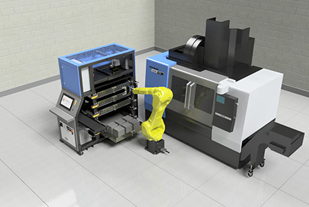 - an automated two-way drawer system for stacking, storing and loading workpieces and machined components