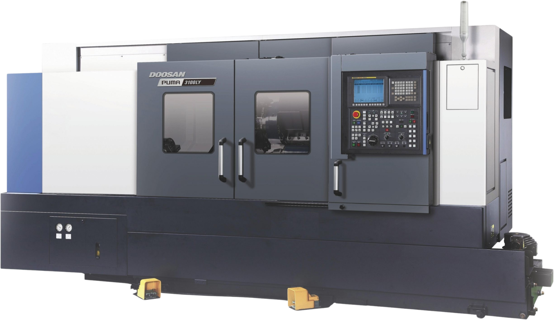 The Doosan Puma 3100LY is compatible with Fanuc and Siemens.